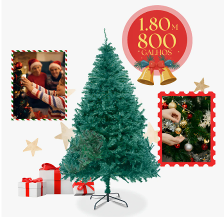 Árvore De Natal Tradicional Pinheiro Luxo 1.80m 800 Galhos