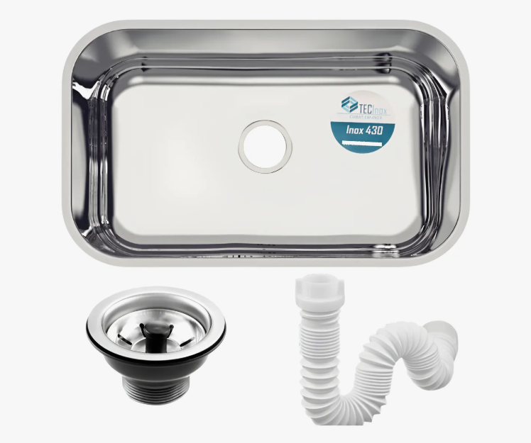Este modelo de cuba TeC Inox é produzida em aço inox AISI 430, espessura de 0.5mm acabamento Alto Brilho, proporcionando uma elegância em seu ambiente.