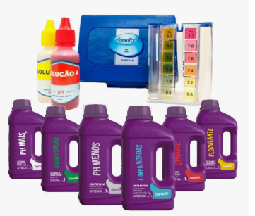 Floculante + Algicida + Redutor de pH + Elevador de ph + Limpa Bordas + Estojo de Análise
