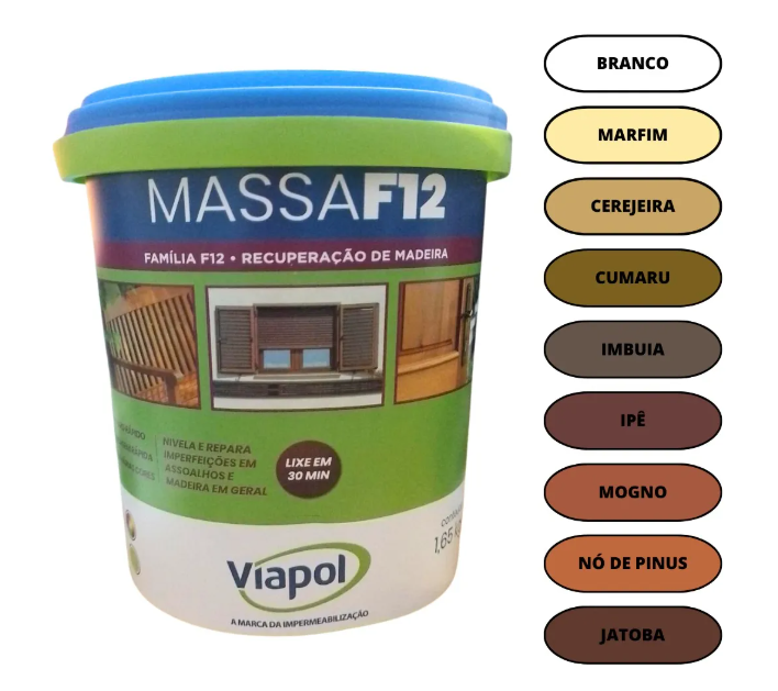 Massa F12 Calafetar Correção Madeira Viapol 1,65kg Div Cores