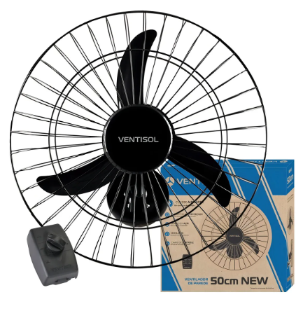 Ventilador De Parede Oscilante Preto 50cm New Plástico 130W 3 Pás Ventisol